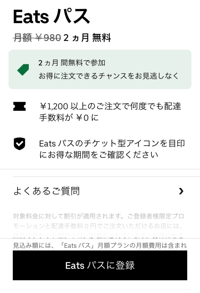 ubereatsを利用したところ、身に覚えがないのですがeatsパスの2ヶ