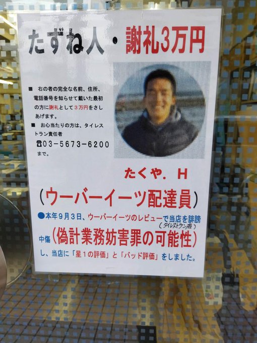 ヤバ過ぎ】足立区の飲食店 ウーバーで☆5以外のレビュー付けられ警察